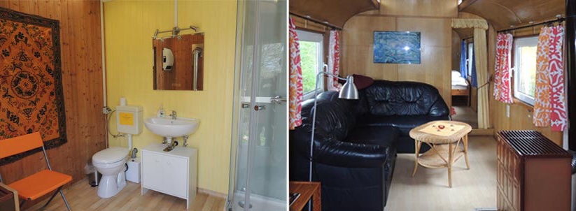 Wollten Sie nicht immer schon einmal in einem richtigen Zirkuswagen wohnen? Bei uns ist es möglich! Der Wagen ist 10m lang und hat eine Küche, einen Wohnraum und einen Schlafraum, wie auch eine eigene Gartenterasse. Das Sofa im Wohnbereich ist zu einem zusätzlichen Doppelbett umbaubar. Die Dusche sowie Toilette und Waschbecken befinden sich separat im Badewagen direkt neben an.